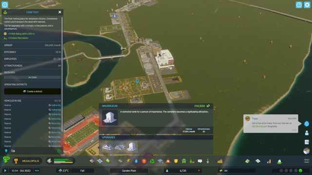 Finalmente, las mejoras son tentadoras cuando colocas edificios, pero pueden arruinar tu presupuesto si compras demasiadas desde el principio. La actualización aumenta el costo de mantenimiento mensual del edificio o estructura que mejoró. Como tal, implementar demasiados puede fácilmente generar un déficit en los ingresos, ya que su ciudad aún está creciendo y apenas comienza a tener opciones de ingresos. Es posible que ni siquiera esté exportando bienes o servicios todavía, ya que primero debe satisfacer la demanda de esos recursos de la ciudad.