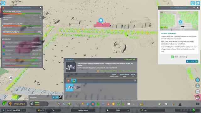 Sin embargo, también puedes aumentar el entretenimiento y manejar Death Care simultáneamente. Cuando construyes un cementerio, puedes mejorarlo inmediatamente con templos y mausoleos. El Cementerio por sí solo añade +3 a la recreación en interiores, y agregar Mausoleos lo convierte en una atracción turística. Los uso para cuidar a los muertos, aumentar el entretenimiento y generar turismo, todo al mismo tiempo. A diferencia de un Crematorio, ni siquiera agregas contaminación al colocar Cementerios.