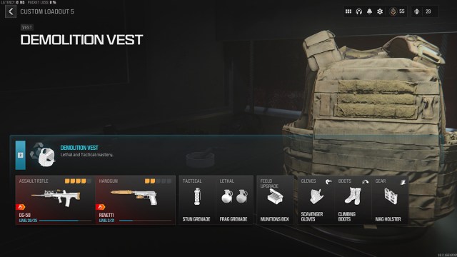 La otra cosa que recomendaría para matar con granadas cocinadas es utilizar el chaleco demolicionista.. No solo aparecerás con dos opciones letales (fragmentos, en este caso), sino que también regenerarás un nuevo fragmento en 25 segundos, siempre que vivas ese tiempo.