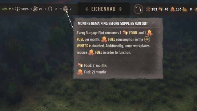 Cómo monitorear las necesidades de combustible y las existencias en Manor Lords
