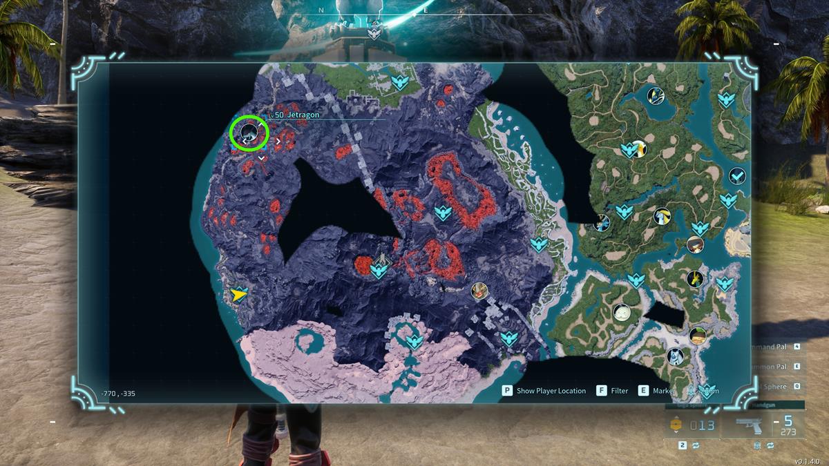 El Jetdragon, la montura voladora más rápida del mundo mundo pal, sólo se puede encontrar en la parte noroeste del Monte Obsidiana. Este es el bioma volcánico del juego y las coordenadas son X: -780, Y: -325..