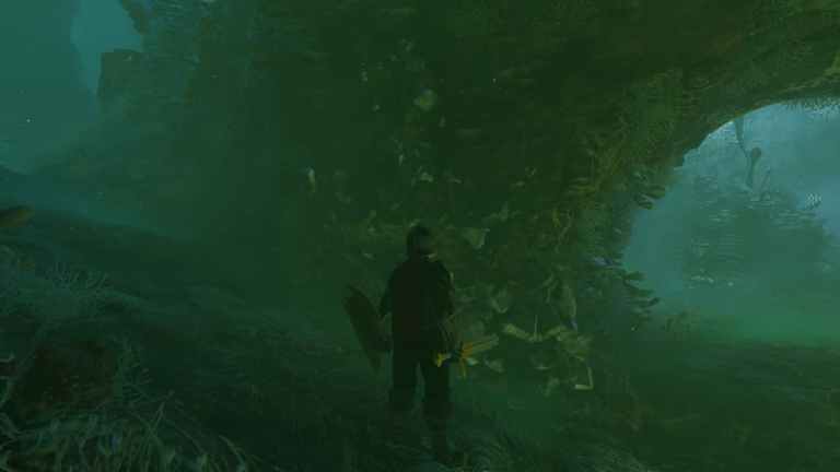 Dentro de una cueva encontrarás grandes depósitos de mineral de estaño. También te conecta con Mining Rift, que es un excelente lugar para cultivar el recurso. Mientras está en la Sábana Santa, hay una Esfera de Retorno cerca de la entrada de la cueva con un Reloj de Arena del Tiempo en los escalones que la rodean.