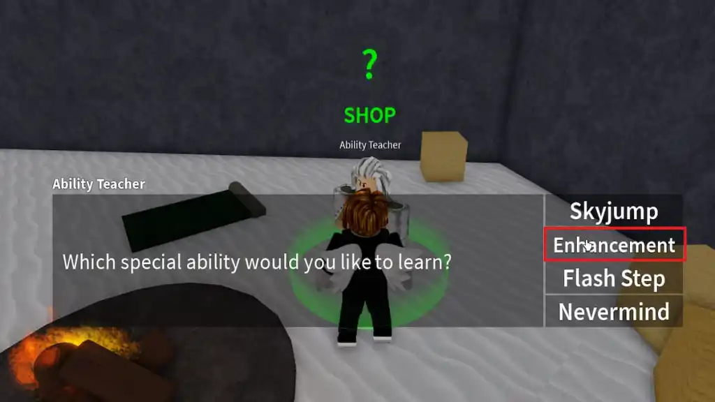 Cuando consigas Frozen Village, podrás localizar al maestro en el esquina derecha de la isla dentro de una cueva apertura. Interactúa con el profesor y haz clic en el Habilidad de mejora o aura opción. Pagar una tarifa de 25.000 BelYo, y puedes aprender la habilidad.