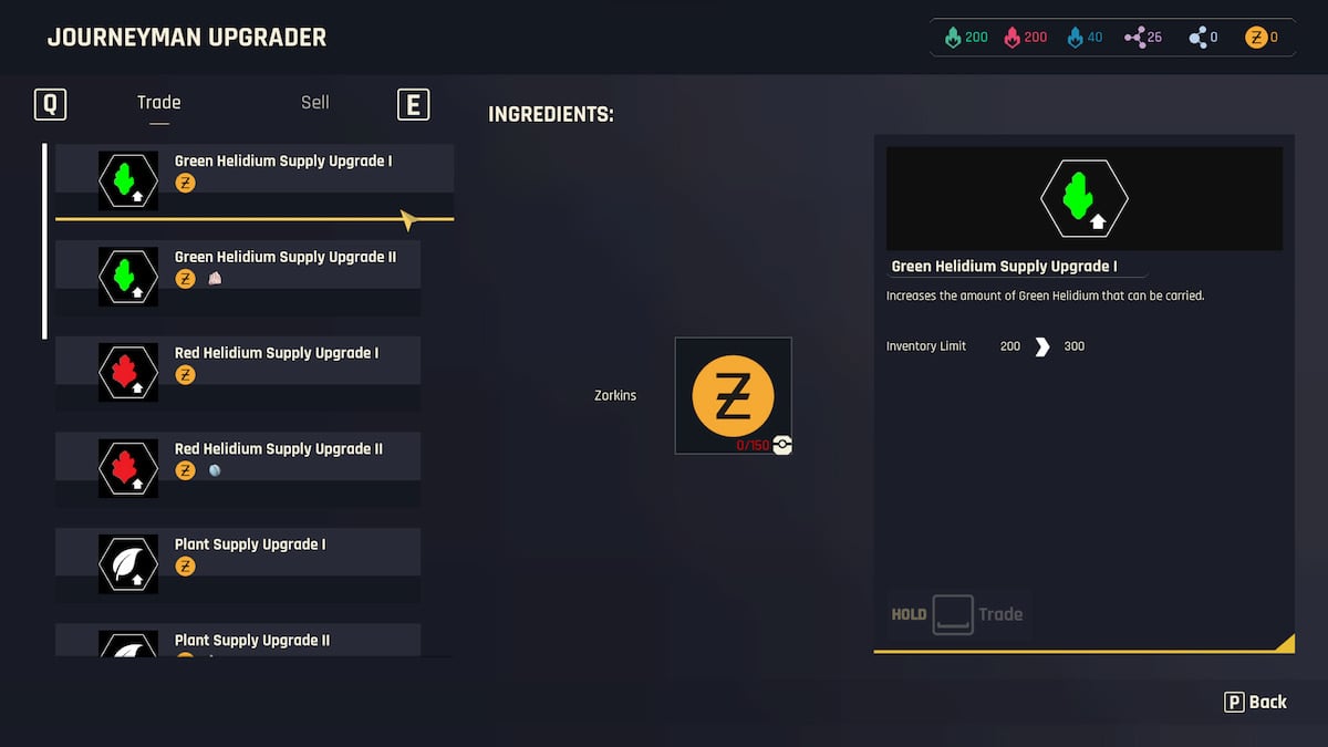 | Mejora del suministro de helidio verde I | Límite de inventario 300 | 150 Zorkins |