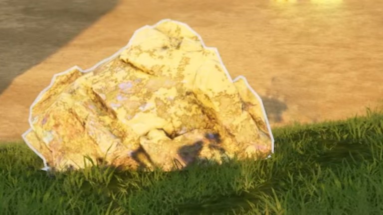 El azufre se vuelve importante después mundo palAl principio del juego, principalmente para pólvora y munición para armas. El nodo minero parece una roca gigante con un tinte amarillento.. Hay varios lugares de cultivo de azufre, y no importa qué lugar visite, llevo un amigo volador conmigo. También tengo un Habilidad de amigo eso aumenta mi capacidad de carga. Además, trae un pico.