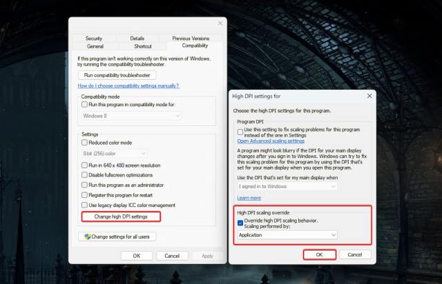 Sospechamos que este problema de resolución tiene que ver con la escala de DPI que se ve comúnmente en varios títulos de Unreal Engine, incluido también el reciente Visions of Mana Remake. Como medida adicional, anule el comportamiento de escala de alto DPI del ejecutable de DRAGON QUEST 3 HD-2D Remake y configúrelo en solicitud.