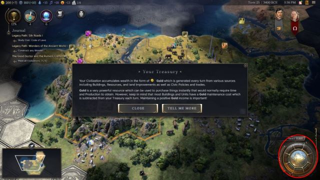 Segundo, ahí está el «Siguiente turno» con el KeyBind predeterminado «Enter». El siguiente turno te mueve más allá de las acciones de movimiento y solo te obliga a tomar decisiones importantes como investigación, actualizaciones cívicas, nuevas políticas y más. Presionar Enter omitirá todas las unidades restantes y irá al siguiente turno.