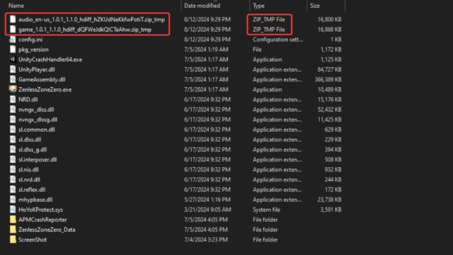 • I den ZenlessZoneZeroGame mappe, skal du slette de midlertidige zip-filer.