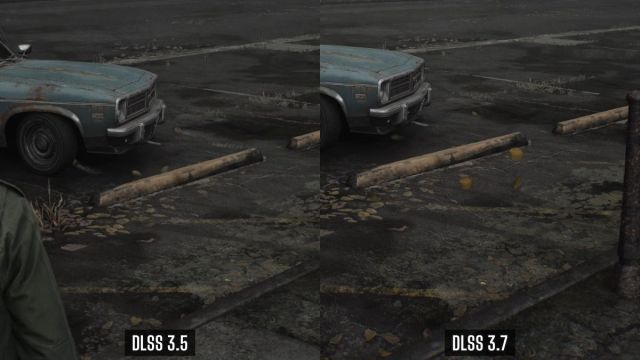 Som du kan se i sammenligningen ovenfor, efterlader knivene et mærkbart hvidt spor under deres bevægelse, men i tilfældet med 3.7’eren er det knap nok, og knivene har et mere defineret udseende. Dette gælder for andre objekter, der er i konstant bevægelse og for det meste er blevet rettet med den seneste version af DLSS.