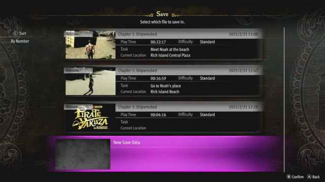 Ja, ligesom en Pirate Dragon Yakuza på Hawaii har tre roterende autosave, og spillere kan manuelt gemme deres fremskridt, når som helst de ikke er i kamp.