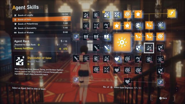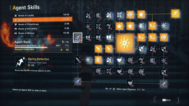 - Vielleicht sind dir die 100 Anomaliepunkte-Agentenfähigkeiten in Tapferkeit, Menschenfreundlichkeit, Freundlichkeit und Weisheitsbindungen aufgefallen. Diese sind an ein bestimmtes Digimon mit einer Persönlichkeit gebunden und verleihen diesen Werten einen massiven Boost von 25 %. Wenn du Tausende von Werten erreichst, insbesondere wenn du über Champion-Level bist, sind 25 % beachtlich. Du brauchst nur die richtigen Agentenfähigkeiten und weißt, wie du sie einsetzt. Hier sind einige gute offensive Knotenpunkte: