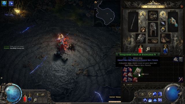 Zunächst müssen Sie die Level der Kartenmonster entsprechend durchgehen. Die ersten beiden Punkte beginnen bei Monsterstufe 79. Dies ist die gleiche Monsterstufe, die Sie erhalten, wenn Sie einen Wegstein der Stufe 15 mit einem Kartenboss-Modifikator abschließen. Sie erhalten die Fertigkeitspunkte, indem Sie das Wissensbuch verwenden, das Sie von Map Boss erhalten haben. Technisch gesehen muss die Karte nicht fertiggestellt werden. Sie müssen nur den Kartenboss eliminieren.