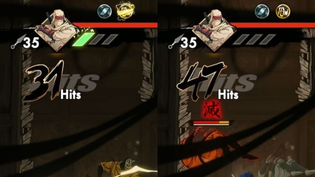 Ach ja, und die Erfolgsanzeige wird in wenigen Sekunden deutlich erhöht. Hier ist ein Vergleich des Zählers vor und nach der Ausführung von Donner-Ninpo.