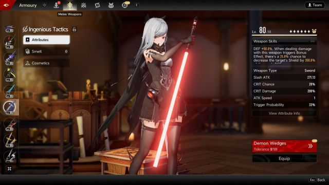 Ähnlich wie die Charaktere haben auch diese Waffen ihre eigenen Dämonenkeil-Sets – deine Ausrüstung besteht also aus Ausrüstung! Diese Dämonenkeile für deine Waffen sind genauso wichtig wie die deines Charakters, da sie die Grundlage deines Builds bilden. Du farmst Dämonenkeile, schmiedest Materialien und verbesserst deine Dämonenkeile, um höhere Werte zu erzielen.