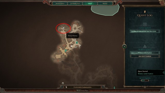 Wenn du beginnst, alle neuen NPCs in Prygos Village zu erkunden, wirst du oben im Dorf einen Ritualschrein sehen.Gehe die Treppe im nördlichen Teil des Dorfes hinauf und interagiere mit dem Ritualschrein.