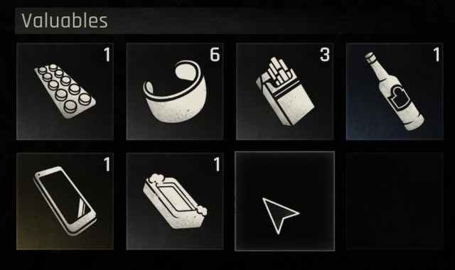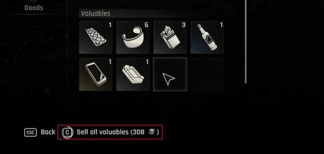 Cualquier artículo marcado con la etiqueta valiosa no tiene un uso práctico, ya que no se puede usar para elaborar ningún arma, munición o mod. En cambio, los objetos de valor se pueden vender por dinero en el juego, que puede usar para comprar equipo y recursos.