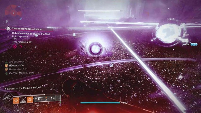 Tendrás dos minutos y medio para derrotar a todos los jefes que aparecen, por lo que querrás hacer buen uso de tus armas de poder y de tantos Supers y habilidades como puedas. No recomiendo intentar enfrentarte a los jefes solo, ni a ninguno de los Blind Well, pero debido a las estrictas limitaciones de tiempo, necesitarás la ayuda de otros Guardianes para lograrlo.