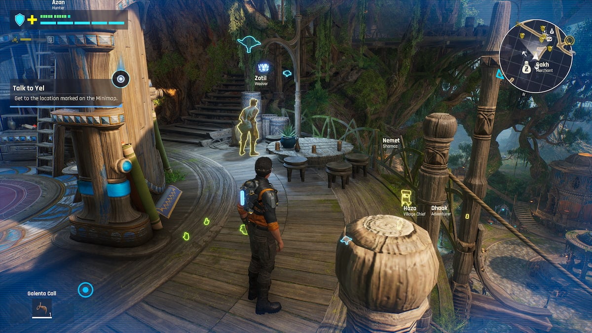 Zotil es de Emea Tejedory para encontrarlo, dirígete al lado noroeste del pueblo y mira hacia arriba. el reside en parte superior de las marquesinas en los árboles de arriba. Golpea una de las plantas con forma de hongo azul para impulsarte hacia las marquesinas y lo encontrarás trabajando.