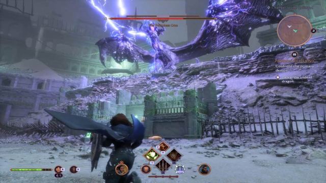 Usar un arma principal basada en fuego o hechizos mágicos causará daño adicional al demonio. Sin embargo, si tienes a Lucanis o Emmrich en el grupo, ambos pueden aplicar daño de Necrosis y agotar la salud del jefe más rápido.
