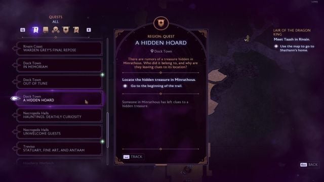 Para activar la misión secundaria A Hidden Hoard, deberás interactuar con el tablón de anuncios en la sección Wharf Crossing North de Minrathous. Incluso hay un punto de viaje rápido en esta región y al norte encontrará este tablón de anuncios.