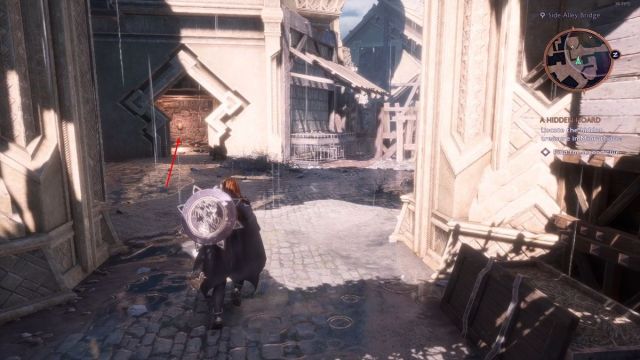 Para llegar a la ubicación de la segunda pista, regrese al área del tablón de anuncios. Encontrará escaleras que conducen al área del Side Alley Bridge de Minrathous, justo enfrente. Gire a la izquierda desde las escaleras y siga recto por la entrada, que conduce a la ruinosa Torre Tidarion.
