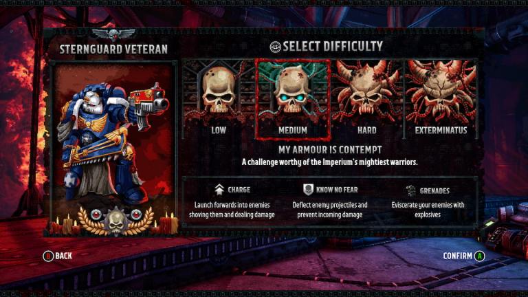 Hay cuatro niveles de dificultad diferentes para elegir al comenzar un nuevo juego en Warhammer 40,000: Perno: Bajo, Medio, Duro, exterminatus. Tu primer pensamiento puede ser ir a la dificultad Media a Difícil, especialmente si eres un jugador experimentado de FPS, pero quizás quieras pensar más en ello.