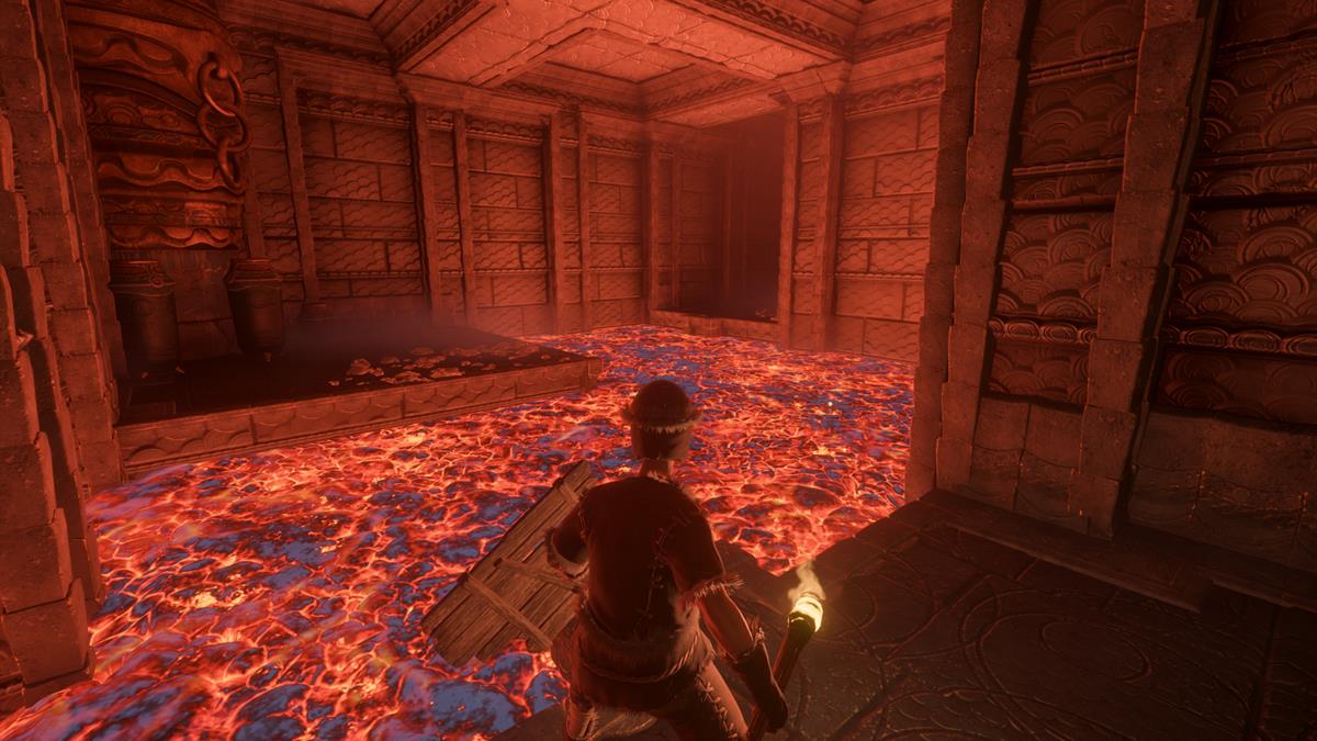 • Haz un salto corriendo sobre las repisas rotas para cruzar la pequeña habitación con la lava.