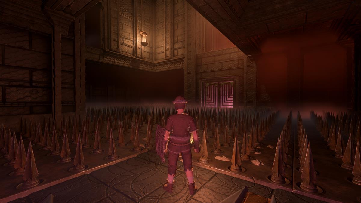 El segundo piso del envuelto Low Meadows Ancient Spire no planteará muchos problemas. Inicialmente, sólo tienes que ir al extremo opuesto del pasillo. Los picos del piso no emergerán todavía hasta que acciones el interruptor.