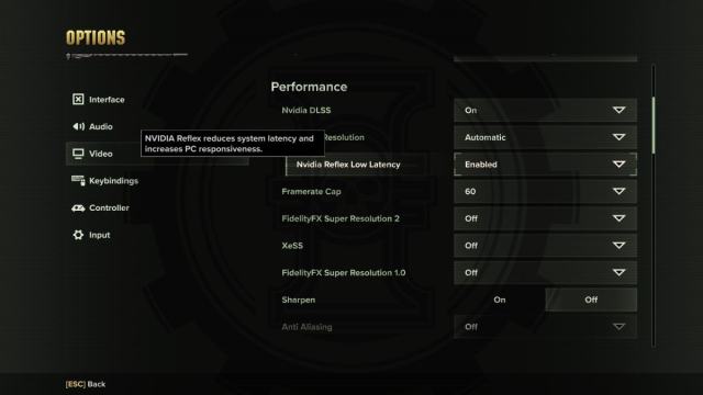 Esto también se puede cambiar en el mismo menú que Nvidia Reflex, en la parte superior junto a Pantalla. Es posible que tengas que configurar esto cada vez que inicies el juego, ya que Marea Oscura es bastante chiflado. Aún así, vale la pena intentarlo y podría funcionar para usted.