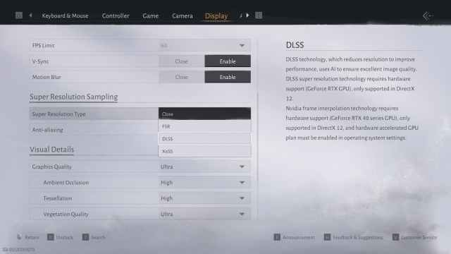 - यहाँ, अब आप देखेंगे डीएलएसएस के आगे का विकल्प सुपर रिज़ॉल्यूशन प्रकार.