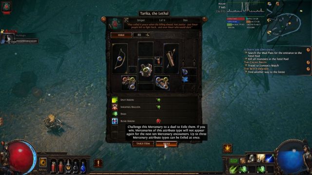आपके पास केवल तीन भाड़े के सैनिक हो सकते हैं, जो सभी किसी भी शहर या आपके ठिकाने में पाए जा सकते हैं। यदि आपके पास पहले से ही तीन हैं, तो गेम आपसे पूछेगा कि जब आप फिर से किसी को नियुक्त करने का प्रयास करेंगे तो आप किसे बदलना चाहते हैं। एक समय में केवल एक ही भाड़े के सैनिक को सक्रिय किया जा सकता है, इसलिए यदि आप स्विच करना चाहते हैं, तो आपको शहर में वापस लौटना होगा और अपने पसंदीदा भाड़े के सैनिक से बातचीत करनी होगी। सुझाव: अभियान और शुरुआती एंडगेम के दौरान भाड़े के सैनिकों को काम पर रखना लगभग बेकार है। वे आपके साथ लेवल नहीं करते हैं, इसलिए यदि आप थोड़ी भी प्रगति करते हैं, तो दुश्मन आसानी से उनके बारे में जान जाएँगे, यदि आप उन्हें पुनर्जीवित करते रहते हैं तो वे पैसे कमाने का एक गड्ढा बन जाएँगे। बस मुद्रा और उपकरणों के लिए उनके आइटम पर नज़र रखें। यदि उनके पास कुछ भी अच्छा नहीं है, तो उन्हें अनदेखा करें। वे अभियान के दौरान कुछ बेहतरीन उपकरण देते हैं, और आपको अभियान में निश्चित रूप से अपने भाड़े के अधिकांश गियर मिलेंगे। उनके कुछ आइटम लेवल 30 की शुरुआत में पाँच या छह संशोधकों के साथ दुर्लभ हो सकते हैं, जो अविश्वसनीय रूप से अच्छा है। निर्वासन के मार्ग पर भाड़े के सैनिकों को कैसे तैयार करें यदि आपने देखा है कि आपके भाड़े के सैनिकों पर सुसज्जित गियर में लॉक प्रतीक है, तो इसका मतलब यह नहीं है कि आप नए आइटम तैयार नहीं कर सकते हैं। लॉक प्रतीक के साथ भी, आप उन वस्तुओं को बदल सकते हैं। आपको करना होगा अपने भाड़े के सैनिकों पर इसे लगाने से पहले आइटम तैयार करें क्योंकि तकनीकी रूप से आप उनसे कोई आइटम नहीं हटा सकते हैं। यदि आप किसी आइटम को वांछित स्लॉट में खींचते हैं