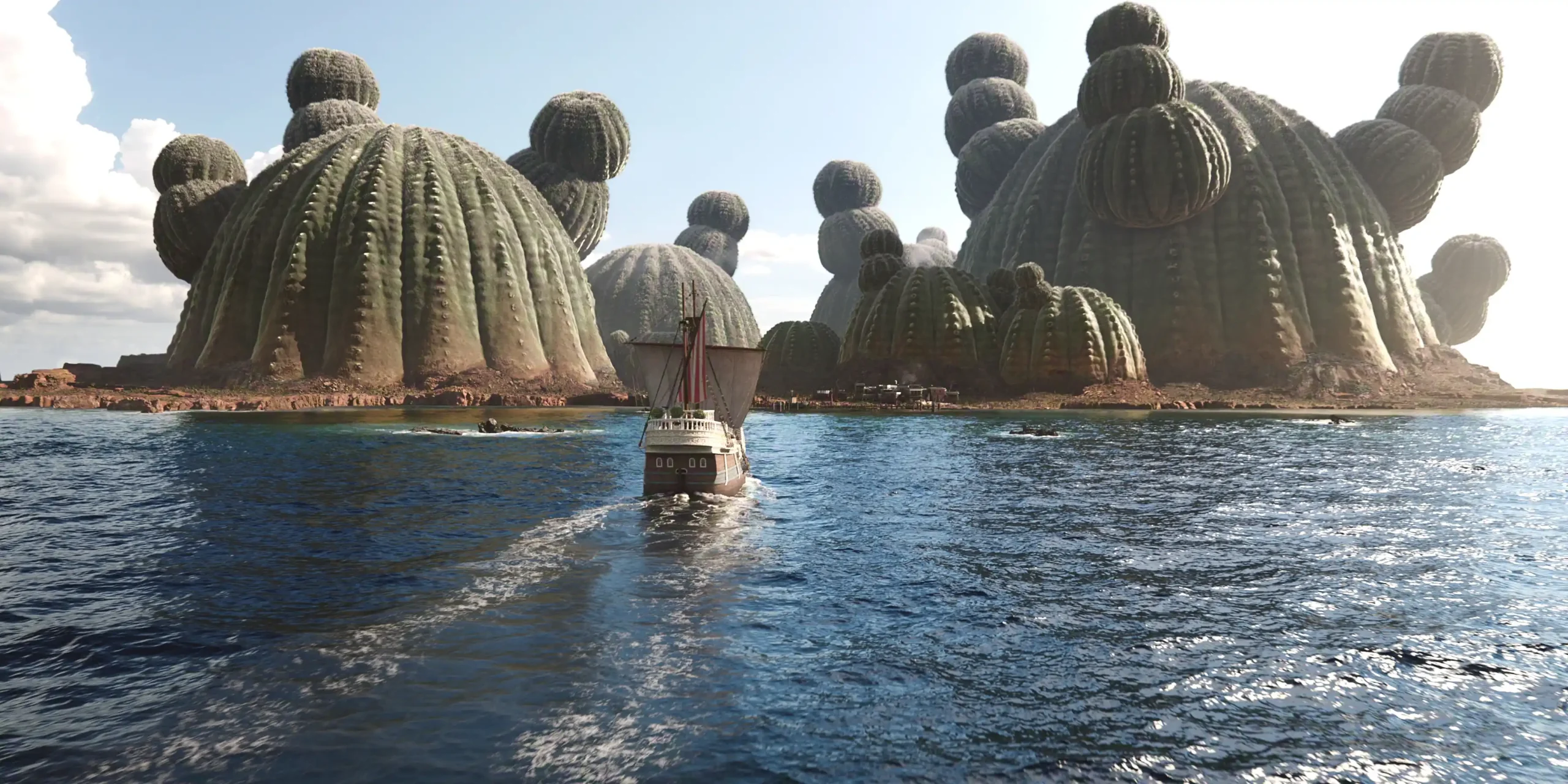 La ciudad desértica de Whiskey Peak, otra hazaña del diseño de producción, demuestra ser sorprendentemente dócil a los piratas. El alcalde, Igaram, explica que su posición como la primera isla en Grand Line ha hecho que dar la bienvenida a los piratas hasta que sigan adelante tenga un poco más de sentido. El entusiasmo de la gente del pueblo por dar la bienvenida a extraños potencialmente peligrosos entre ellos debería hacer sonar algunas alarmas, pero los de Sombrero de Paja necesitan pasar la noche allí hasta que el Log Pose se reinicie, y parece que los dos asesinos fugitivos presentan un peligro mucho mayor que ellos.