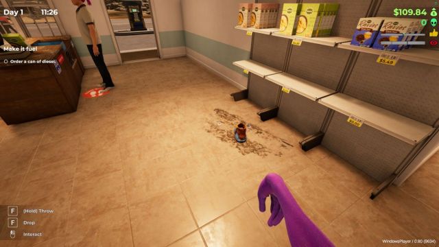 ゴミ以外のものは、トイレにある靴型のスポンジ/クリーナーを使って掃除します。トイレに行き、靴用のスポンジを使ってみてください。ゴミのある場所に行き、マウスの左ボタンを押したまま、完全にきれいになるまでカーソルをドラッグします。臭いについても同様です。少し奇妙ですが、臭いを取り除くには、トイレやガソリンスタンド近くの車の下の床を掃除しましょう。