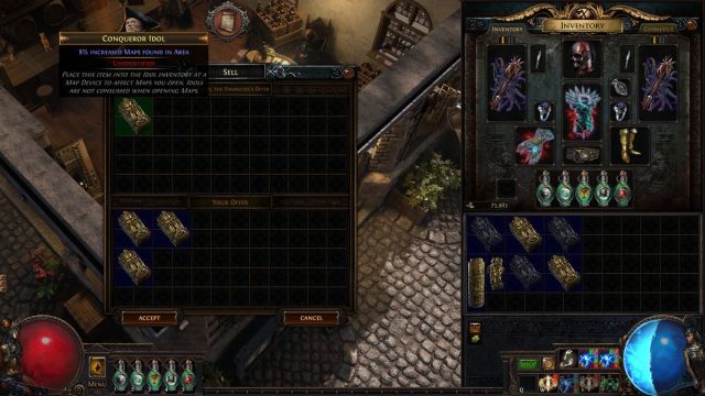 아이돌은 온갖 형태와 수식어를 가질 수 있기 때문에 ‘완벽한’ 아이돌이 되고 싶거나 그렇지 않으면 버려버리게 됩니다. 다행히도 우상의 위치를 ​​바꾸는 것이 가능합니다. 동일한 아이돌 3개를 상인에게 판매하여 무작위로 굴리는 수정자를 사용하여 동일한 유형의 또 다른 아이돌을 얻는 오래된 수법을 사용할 수 있습니다.