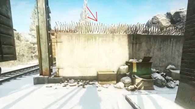 철교의 비밀 추방은 비밀 추출 중 가장 독특한 것입니다. BTR을 타고 기차역까지 가야 하는데, 몇 루블의 비용이 듭니다. Train Depot에 도착하면 기차 선로를 따라 뒤쪽에 도달하고 코드를 사용하여 위 이미지와 같이 벽 뒤의 작은 구석에서 추출하십시오. 지역 주변에 지뢰가 흩어져 있어 통과가 불가능하기 때문에 해당 위치로 이동하려면 BTR을 사용해야 합니다.