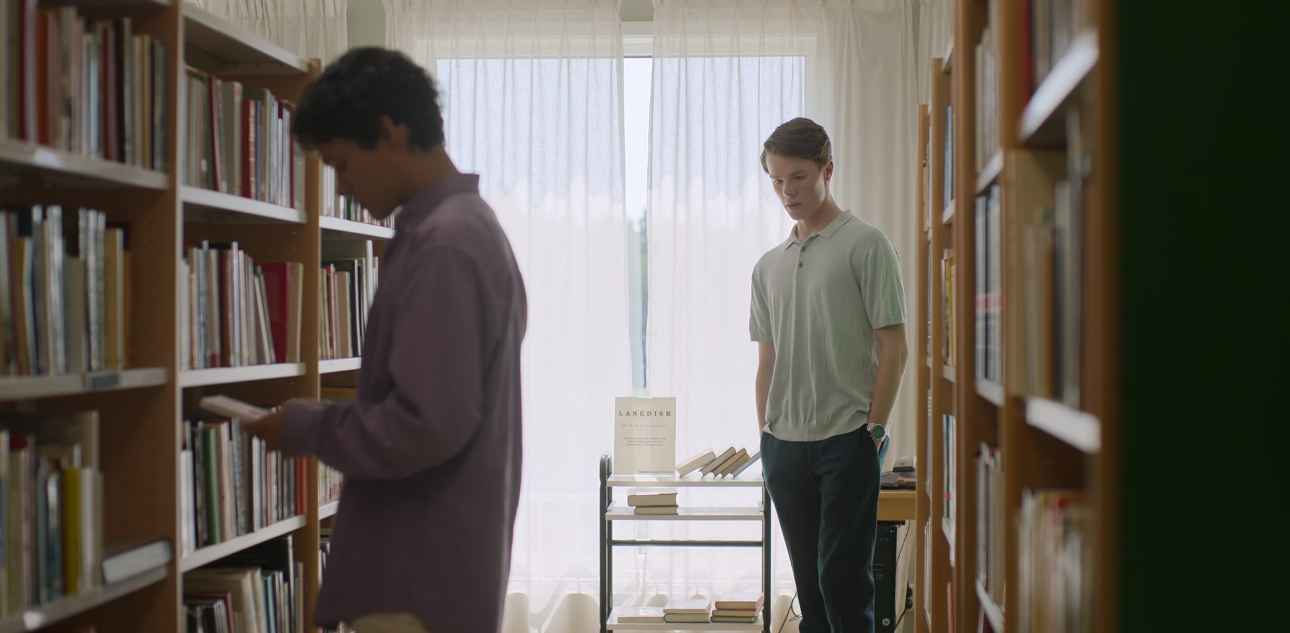 Omar Rudberg como Simon (L) y Edvin Ryding como Wilhelm (R) en Young Royals Temporada 3 Episodio 6 (Crédito – Netflix)