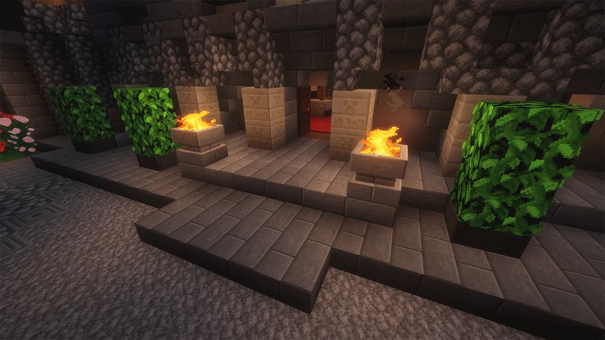 Como puedes sospechar, Bloques Decorativos añade un montón de bloques nuevos para decorar. Mis favoritas son todas las nuevas fuentes de luz, incluida la lámpara de araña y la hoguera. Añaden una sensación cálida y confortable al interior de cualquier edificio. También hay otras decoraciones como pilares de piedra y bancos de madera que pueden realzar cualquier habitación.