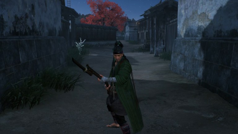 Ronin standing in an ally way holding a musket