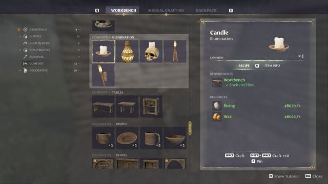 Enshrouded har flere elementer som fungerer som kilder til belysning og dekorasjon. Lys og ild generelt gir komfort til spillerne, og det er viktig å ha dem i basen og inne i rommene. En av de første formene for belysning i Enshrouded kommer fra den første arbeidsbenken i form av stearinlys og fakler. Slik kan du lage stearinlys i Enshrouded og lyse opp din ydmyke adobe.