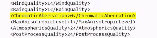 Mens bevegelsesuskarphet og dybdeskarphet kan deaktiveres i spillet, har kromatisk aberrasjon ingen mulighet. Den er aktivert på motornivå, men heldigvis kan vi redigere konfigurasjonsfilen for å deaktivere effekten, forbedre bildekvaliteten betraktelig og eliminere uskarphet og forvrengningseffekten forårsaket av den.