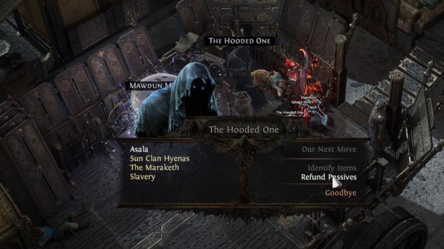Ved å starte kampanjen i Act 1 vil du allerede ha tilgang til passiv ferdighetsrefusjon, men det har en pris. I Clearfell Campment, som er hovedbyen i Act 1, møter du «The Hooded One». Denne mystiske figuren er allerede en sentral del av historien, men han fungerer også som en NPC i byen, og gir deg tilgang til å løse inn dine passive poeng og identifisere gjenstander. Å identifisere gjenstander med panseret er gratis, men å refundere dine passive poeng vil koste deg gull.