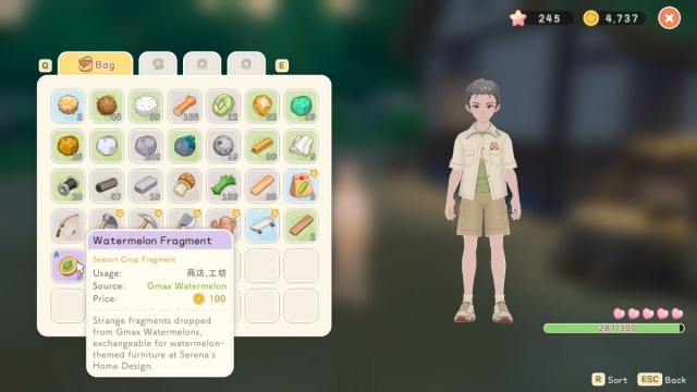 Você pode obter qualquer um desses fragmentos, dependendo da estação. Geralmente, você precisará do Fragmento de Melancia, pois provavelmente receberá esta missão durante o primeiro verão.