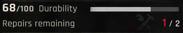 Você verá quantos “consertos” restam logo abaixo da barra de durabilidade.