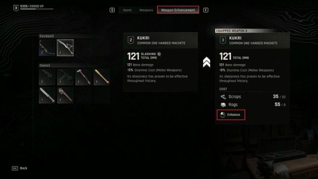 Se você realmente gosta de uma arma e deseja continuar usando-a, pode redefinir sua durabilidade “aprimorando-a” na bancada.