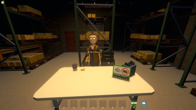A polícia costuma ficar perto da porta principal do armazém, então é preciso correr para o lado para evitá-los. Se você for pego, terá que correr para perto da lateral do motel para escapar da polícia, pois há um beco sem saída nos fundos do armazém.