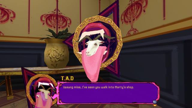 Os jogadores podem atualizar vários aspectos de suas armas e habilidades de combate interagindo com o TAD em diferentes pontos do jogo. Este é um NPC com cabeça de bode (eu sei, não é muito útil, mas tem uma captura de tela abaixo) que irá trocar upgrades e itens com YOWZAS, que também são adquiridos com a venda de artefatos para o TAD.