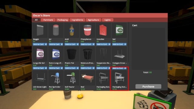 La mayoría de los jugadores pasan por alto la estación de embalaje Mk.2 porque el texto se ve igual que el primero. Hay muchas más cosas interesantes para comprar en Oscar, como las luces LED Grow y las estaciones químicas, donde los jugadores pueden no notar una segunda estación de empaque.