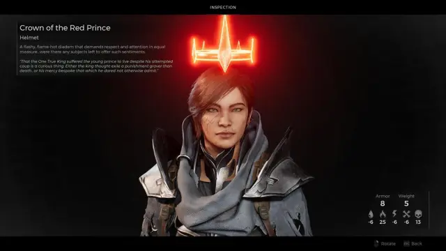 Uno de los tocados más exclusivos de Resto 2 es el Corona del Príncipe Rojo, que es una pieza de armadura individual que no pertenece a ningún conjunto conocido. Tiene una resistencia al fuego extremadamente alta (25) y una resistencia al daño por plagas (13). Este objeto cae del Príncipe Rojo en Losomn si logras matarlo con la Daga del Asesino.