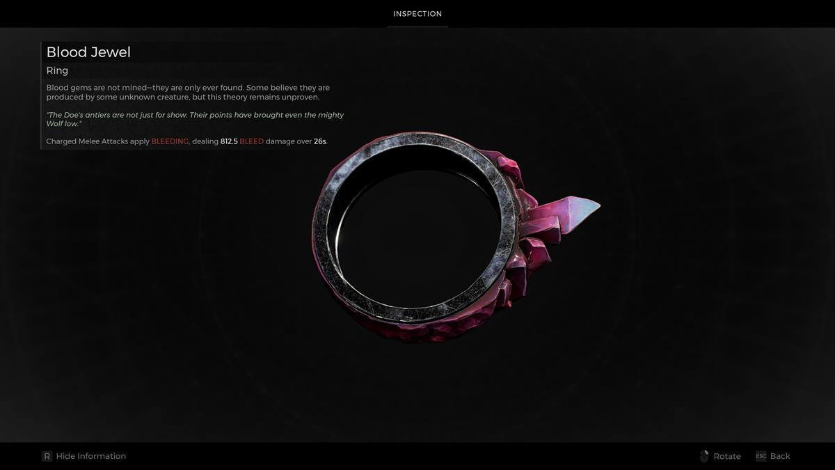 - Anillo #3: Joya de sangre – Esta es otra buena elección si necesitas aplicar sangrado a varios oponentes. Se encuentra en el Templo Perdido en Yaesha.
