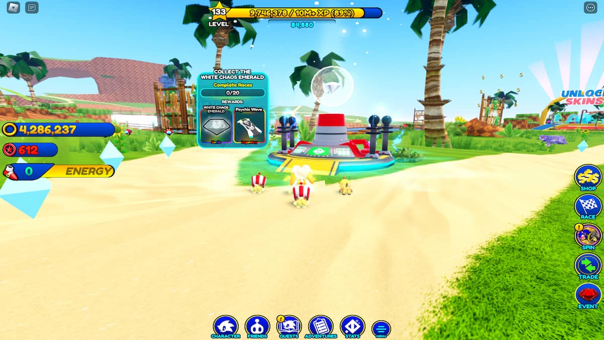 Simulador de velocidad sónica te invita a explorar varios mundos favoritos de los fanáticos, completar un puñado de misiones únicas e incluso competir o convertirte en algunos de los personajes de Sonic más icónicos de todos los tiempos. Agregado con la actualización del 16 de diciembre de 2023, Silver the Hedgehog puede ser desbloqueado por un tiempo limitado solo por aquellos que encuentren y recolecten las siete Chaos Emeralds que se han escondido en el mapa.